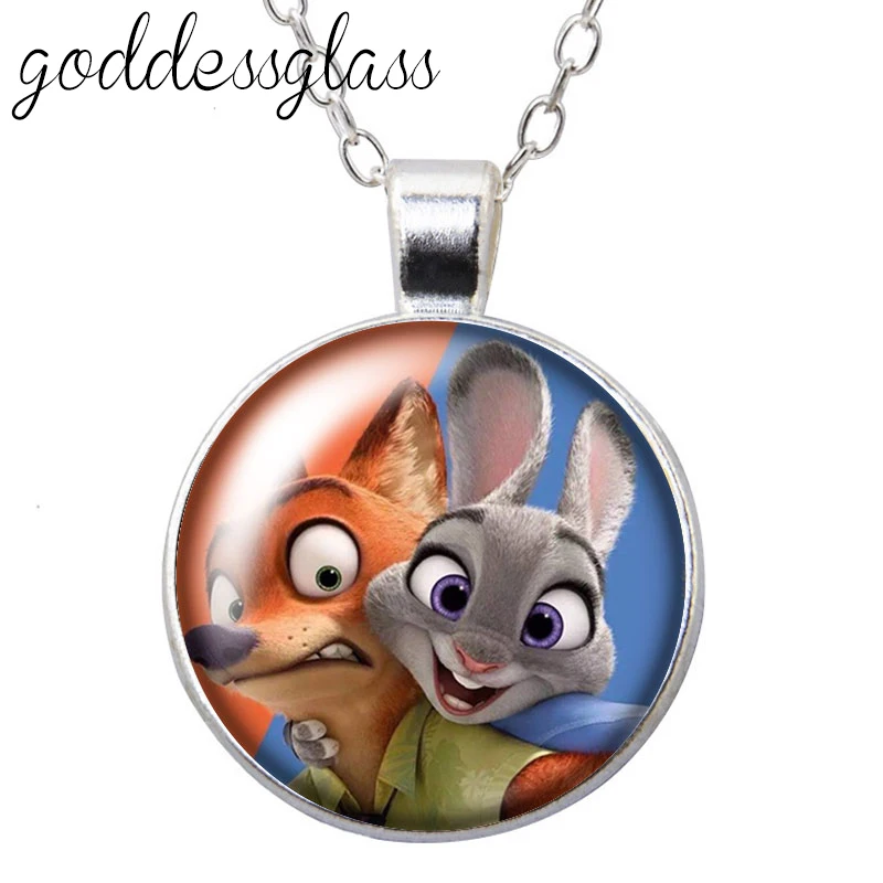 Disney зверополис, Ник лиса Джуд мультфильма зверополис, круглые стеклянные кабошоны разрисованные изделия из стекла с серебряным покрытиемподвеска с кристаллом ожерелье ювелирные изделия для подарка