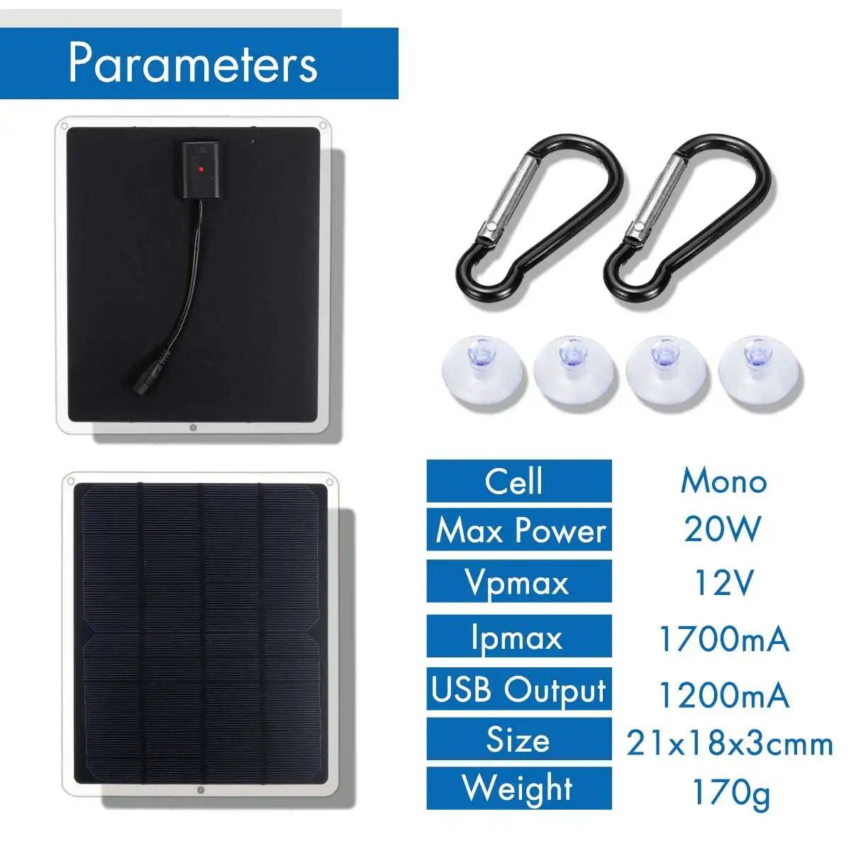 0WМСолнечная батареяМощностьЗарядная панель w присоски и карабинДля DUO выход для 12V5V вентилятор для кемпинга/лампа/система генератора мощности