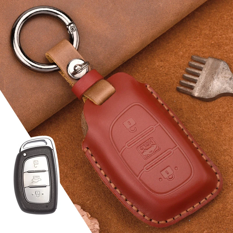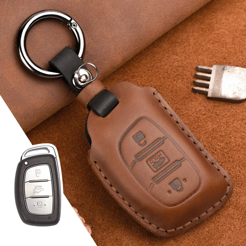 Кожаный чехол для автомобильного ключа, чехол для Hyundai IX25 IX35 I30 I40 Santa Fe Creta Solaris 2016 2017, аксессуары для ключей
