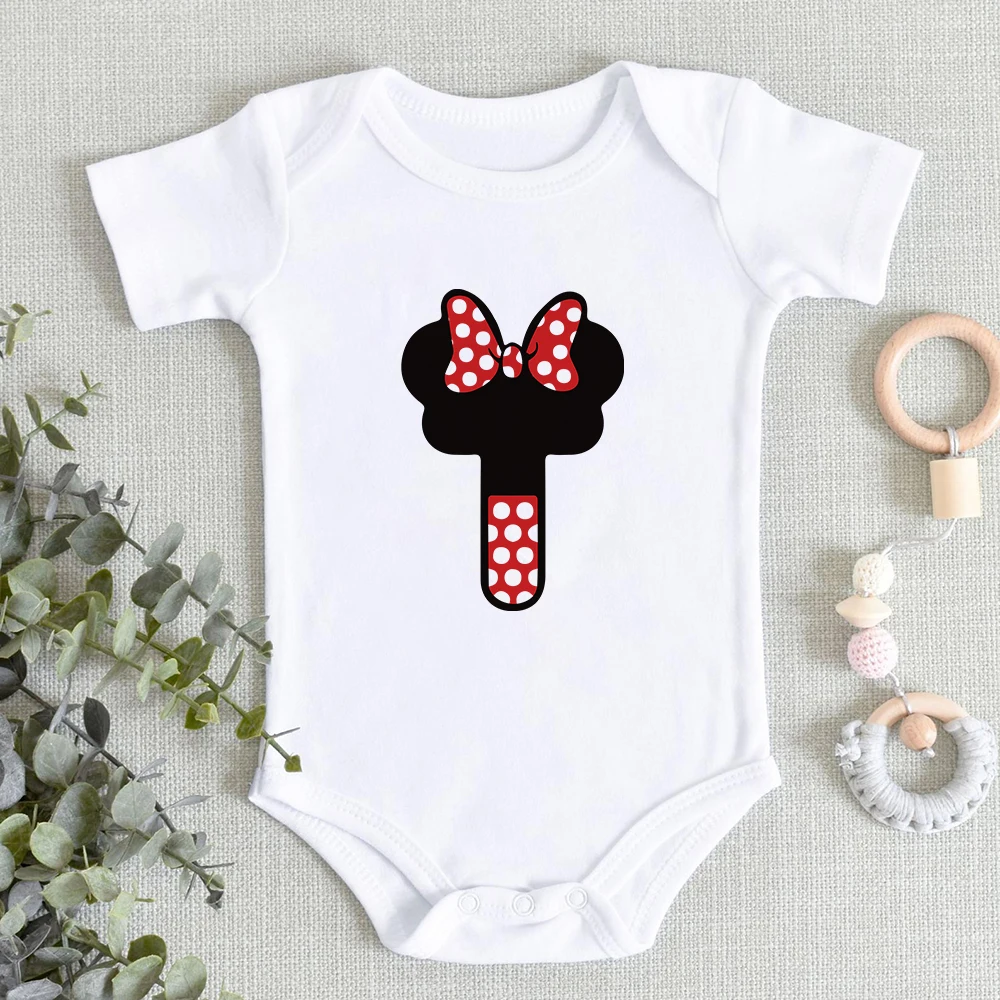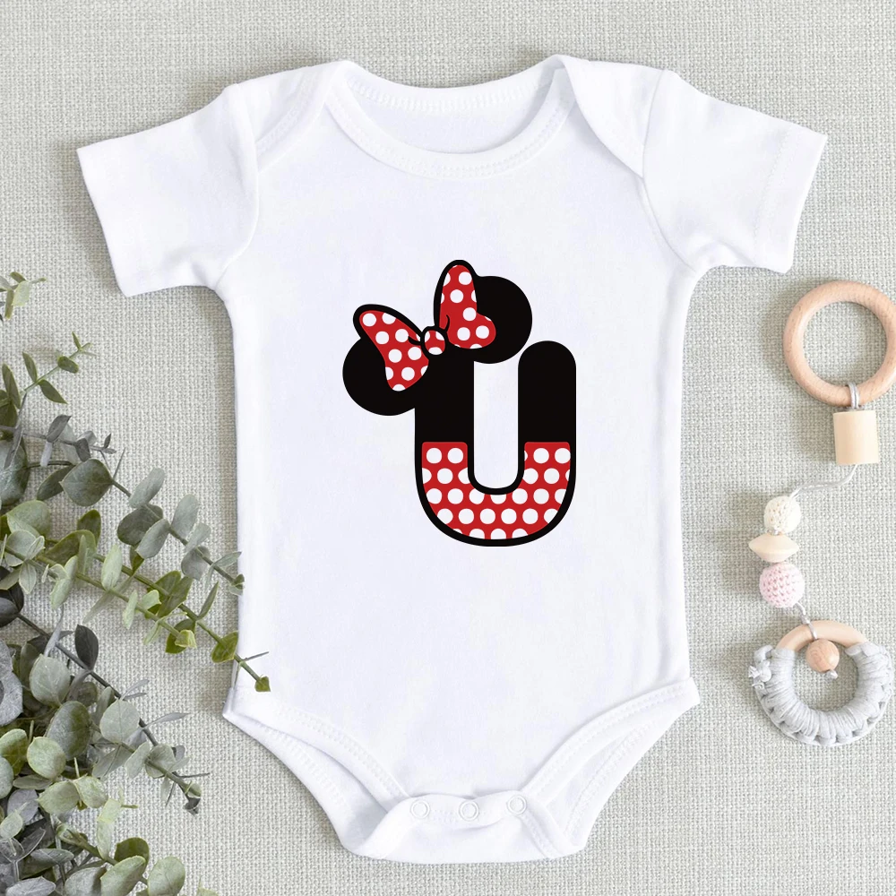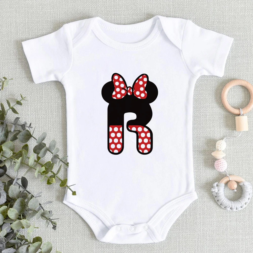 Комбинезон детский с надписью и именем на заказ, комбинезон с принтом Disney, с Минни Маус, шрифтом A, B, C, D, E, F, 0-24 мес.