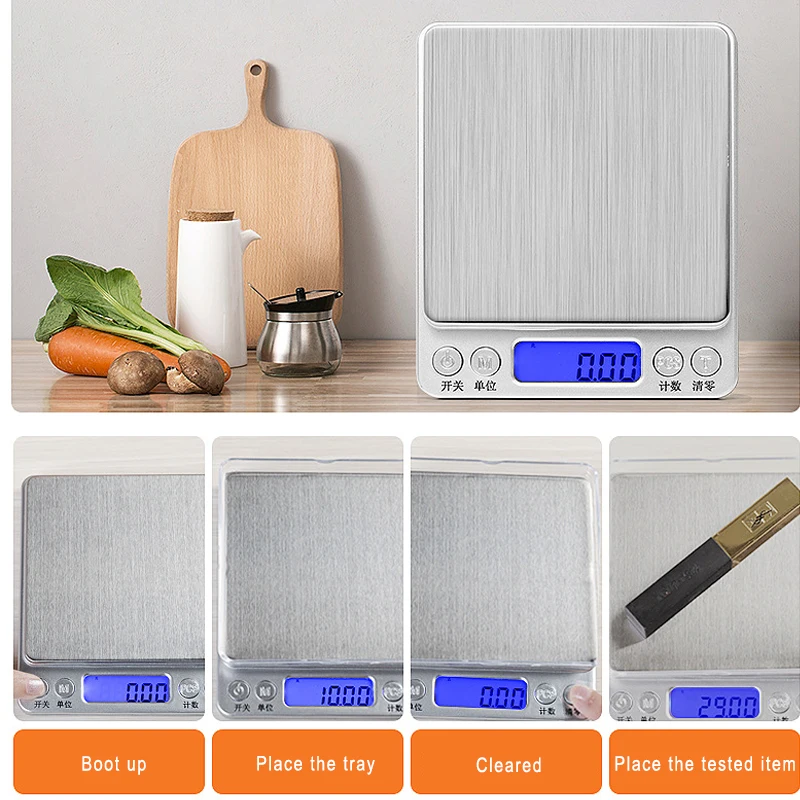 Package included1*scale+2*tray+1*User manual+1*Button waterproof sticker