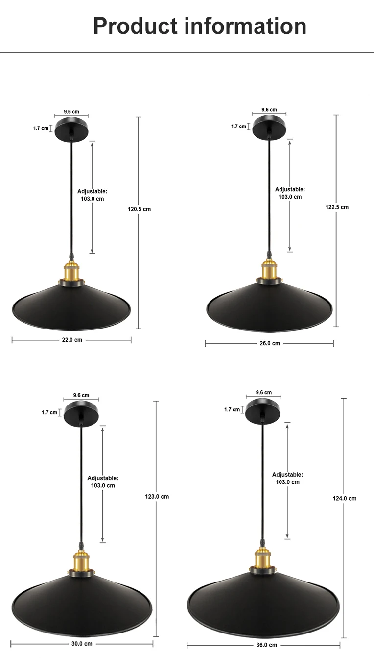 ● Номер модели: подвесные светильники ● Размеры изделия: как на фотографии ● Источник питания: E27 ● Напряжение: 80-260 В ● Материал: металл ● Цвет: черный ● Светильник в комплект не входит. Тип изделия: подвесные светильники Техника: покрытие