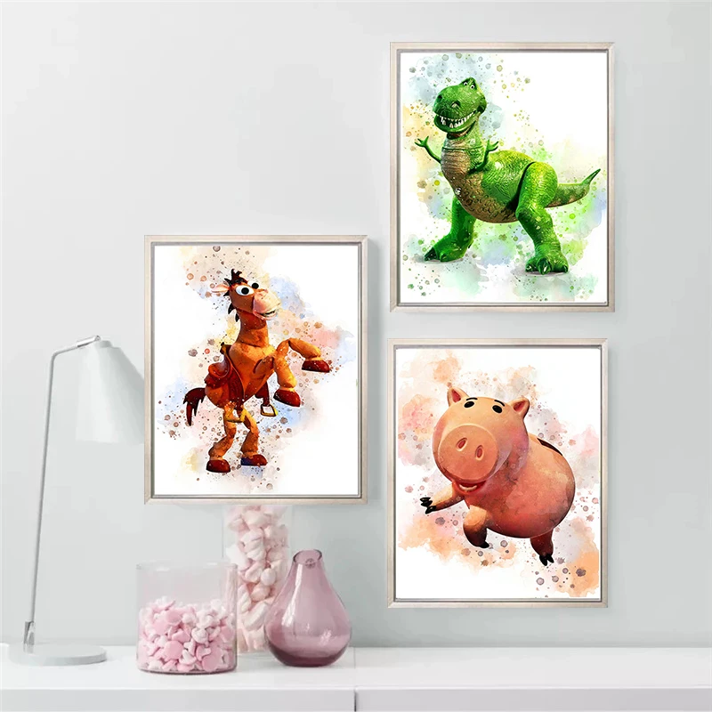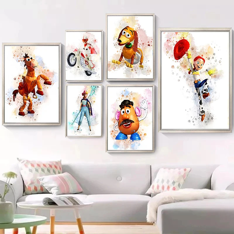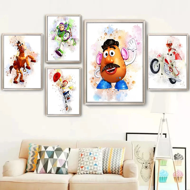 Disney История игрушек, Акварель Картины на холсте фильм постер, абстрактный Рисунок Wall Art картина для детской комнаты Куадрос домашний декор