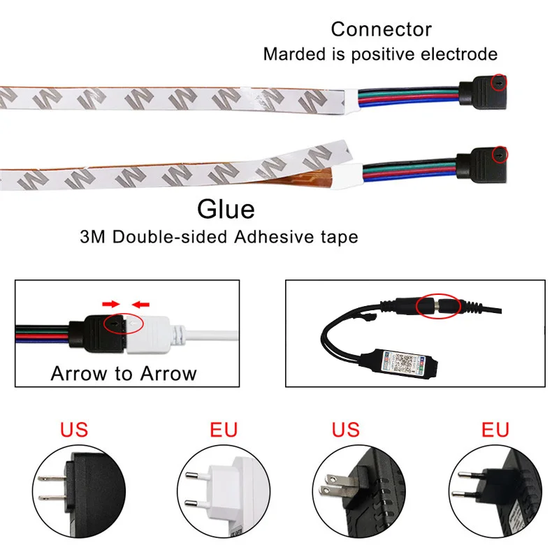 5 м: адаптер питания + комплект управления + светодиодная лента 5 м