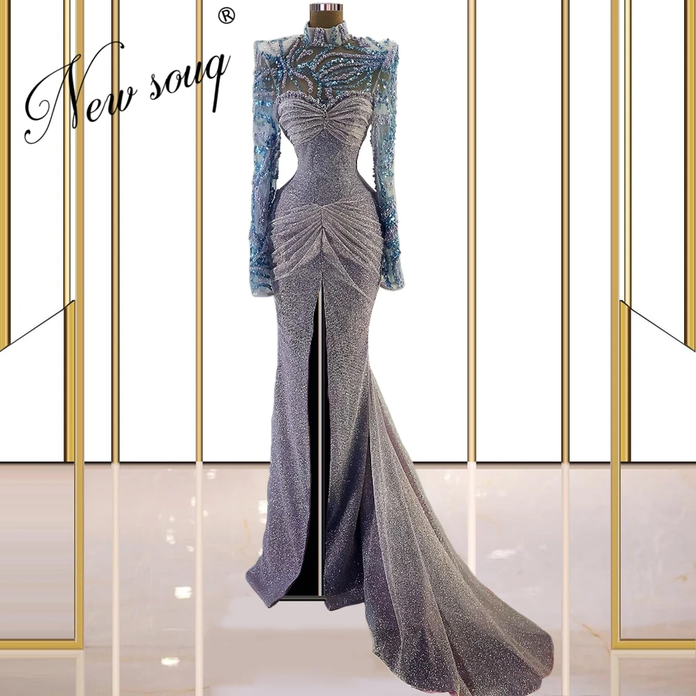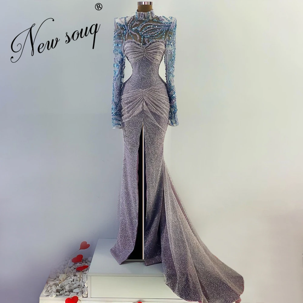 Роскошные Серебристые вечерние платья-русалки, Новое поступление, женские платья знаменитостей, платья с разрезом для выпускного, 2021, вечерние платья с кристаллами Дубая