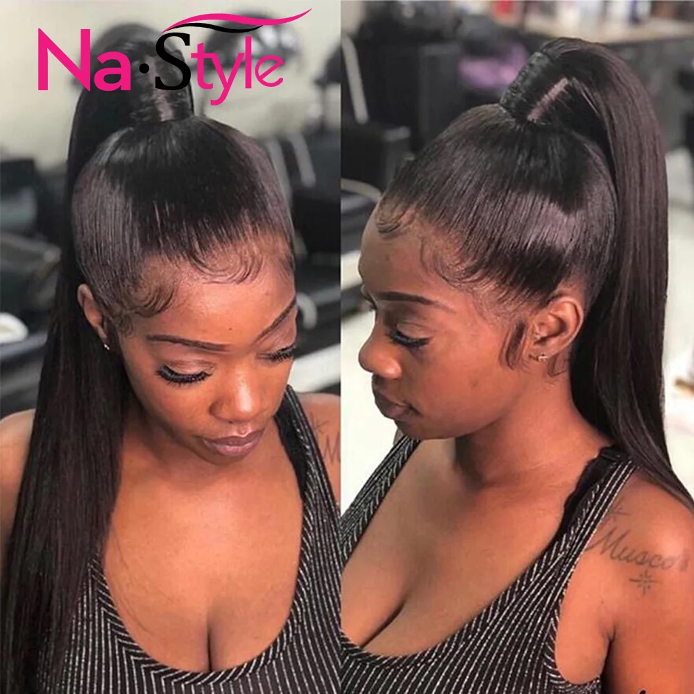 360 парик фронта шнурка al Прямой 28 дюймов парик фронта шнурка жен...
