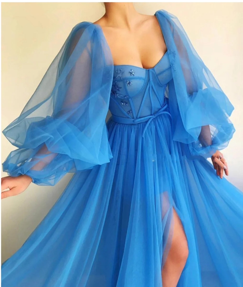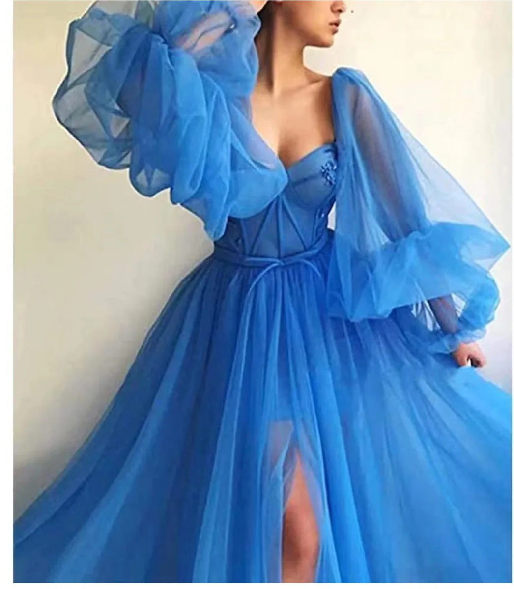 Женские платья для выпускного вечера с длинными пышными рукавами, тюлевые вечерние платья с открытой спиной, пышное платье для торжеств, платье с оборками, السالس, Vestido De Festa