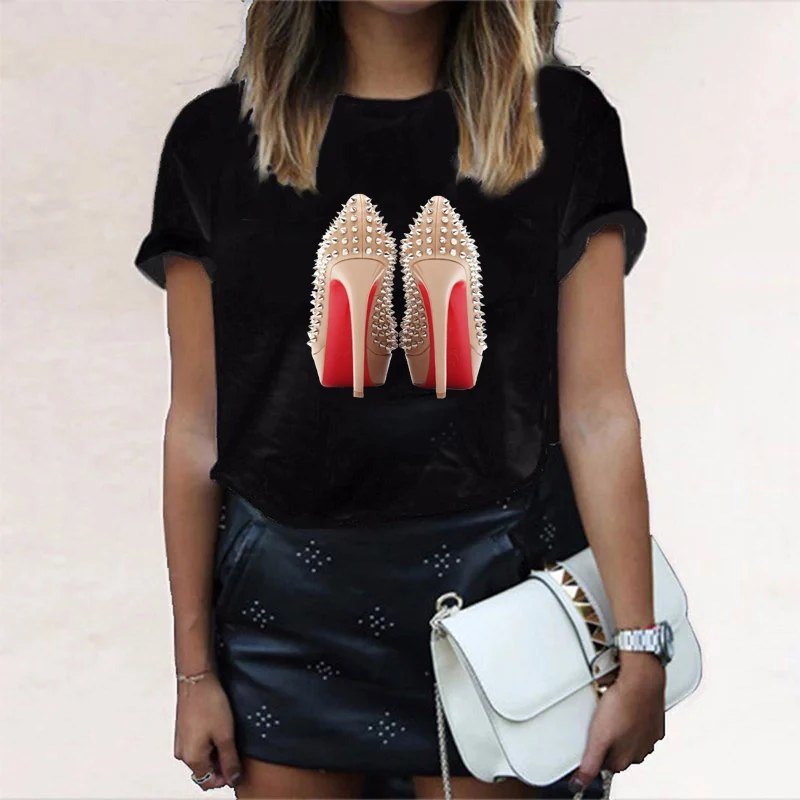 Футболка ZOGANKIN женская с принтом туфель на высоком каблуке, крутая тенниска с коротким рукавом, топ в стиле 90-х, хипстерская уличная одежда, черный цвет