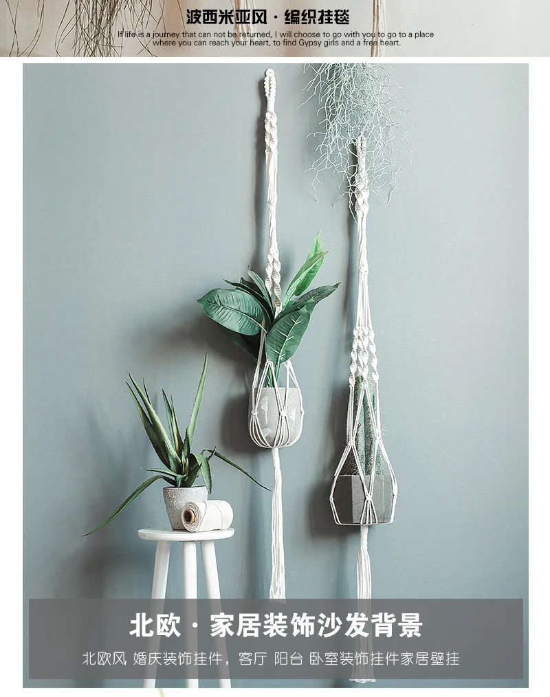 Вешалка для цветочного горшка, хлопковая веревка, плетеная вручную
