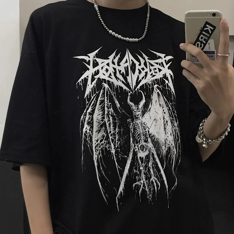Женская футболка Harajuku Y2K, топ в стиле Харадзюку, ретро, корейский стиль, черный дьявол, панк, готический аниме, одежда с принтом, размера плюс