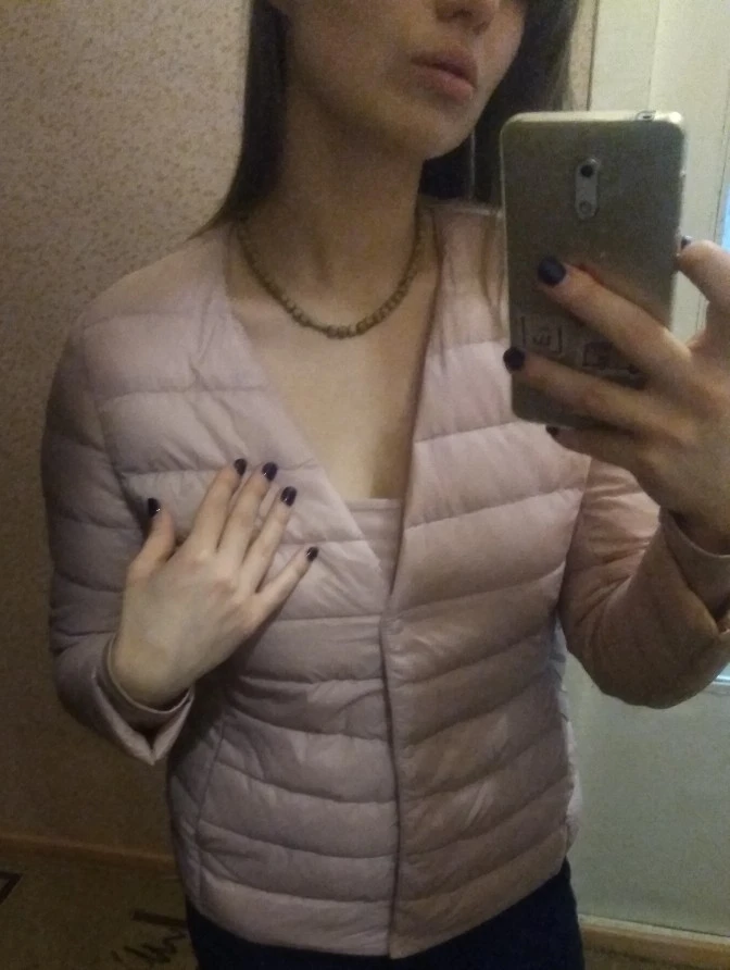 Курточка пришла быстро. Тоненькая, как раз под пальто или пуховик отлично вторым слоем. Нитки не торчат, сшита отлично! Можно скрутить в мешочек и места мало занимает. Все супер.