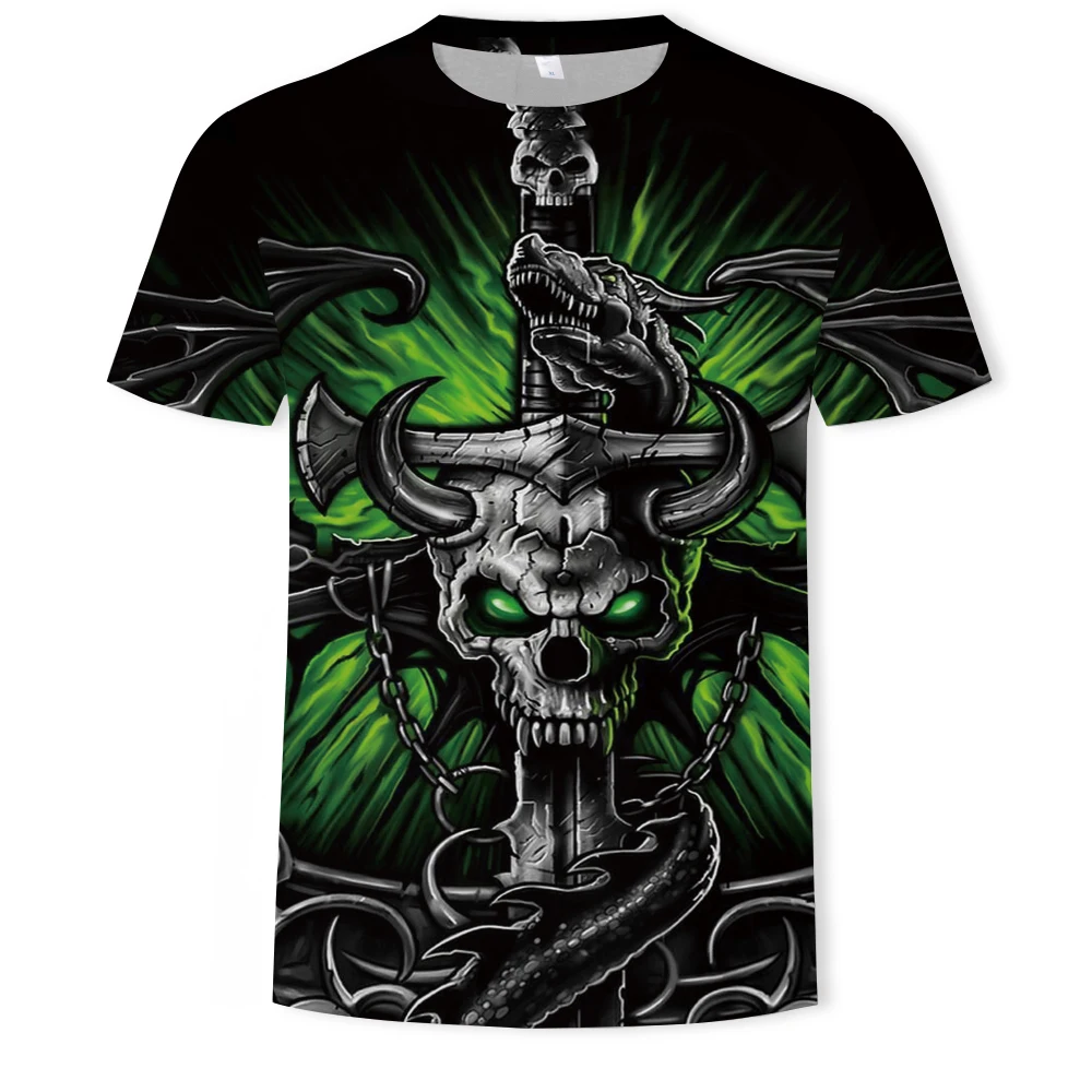 Футболка мужская с 3D принтом черепа, топ в стиле оверсайз, тенниск...