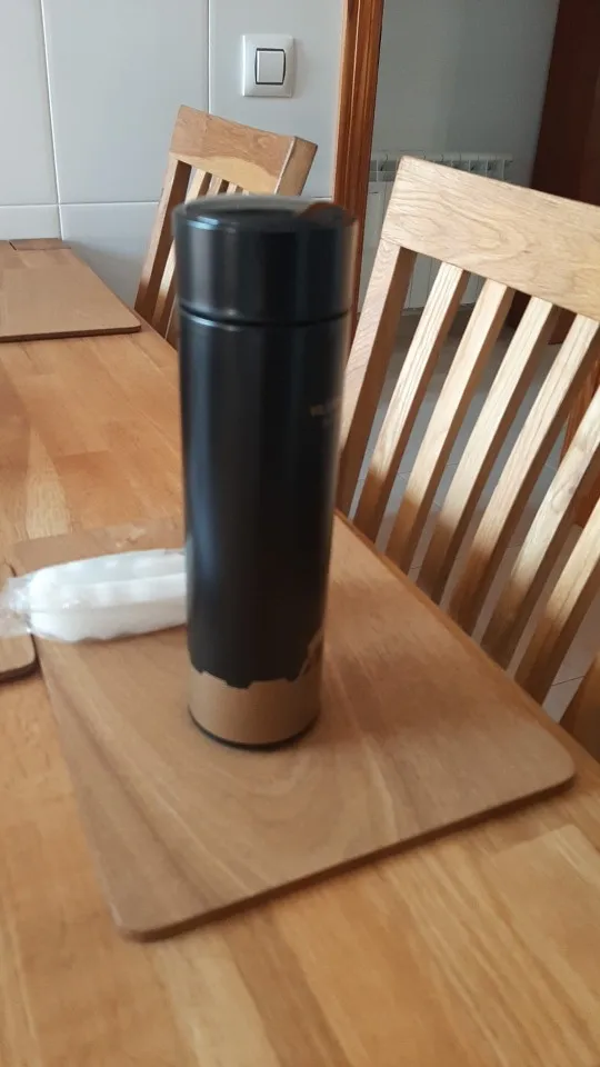 Es tal cual se describe, completamente estanco y mantiene muy bien el calor, pero ponía que venía con un cepillo que no he recibido (o igual no lo entendí bien) ♀️ Sea como sea, en principio es exactamente lo que necesitaba. Por cierto, la pantalla de la tapa es táctil: hay que tocar para que aparezca la temperatura ^^