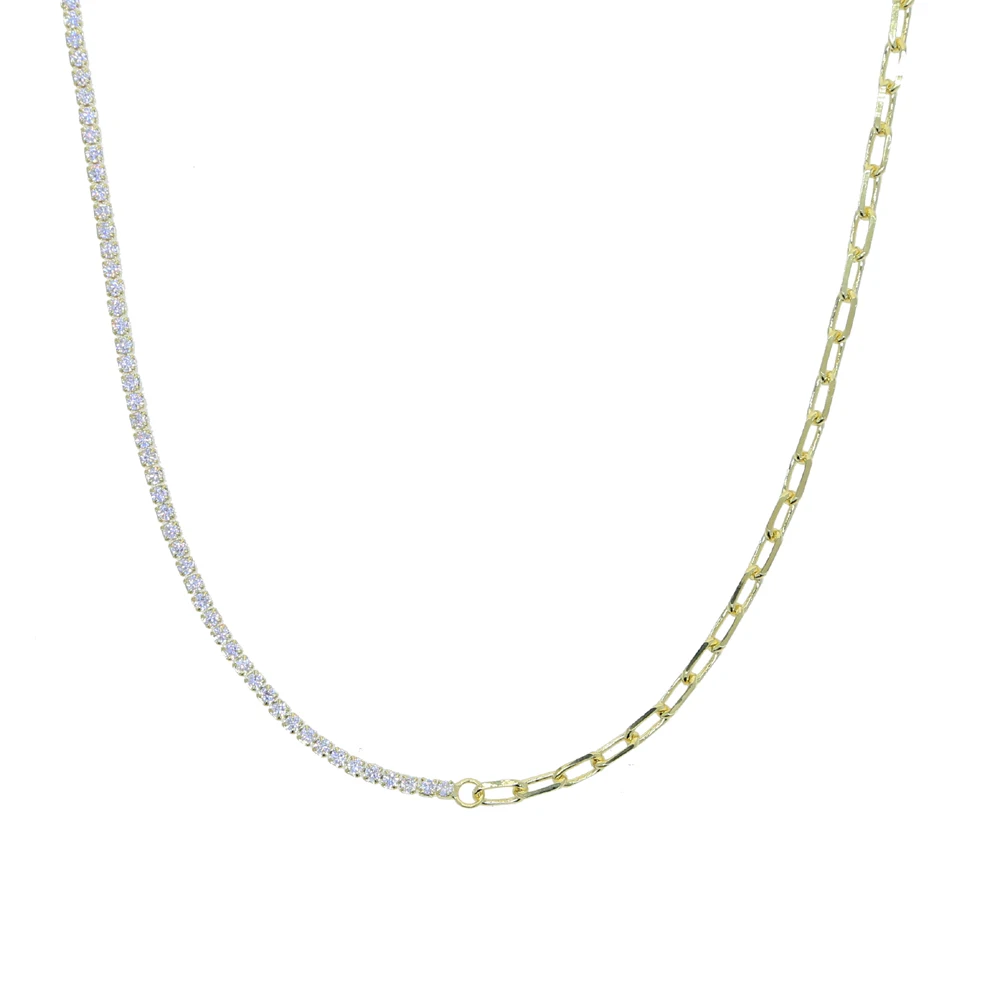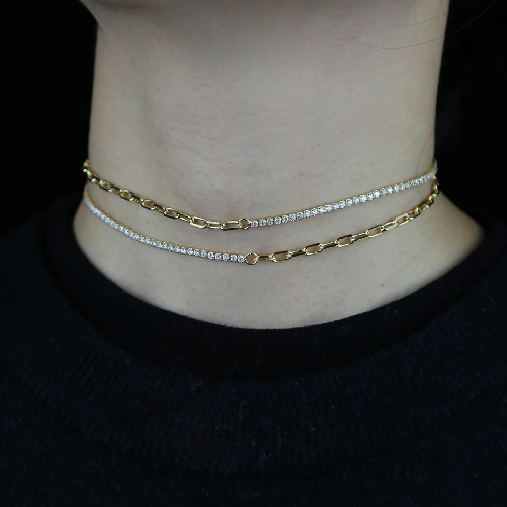 Наименование товара:Новое поступление, нежная цепочка на половину скрепки, половина 2 мм, кубическая теннисная цепочка, колье, ожерелье для женщин и девочек, подвески, 18 К, свадебные украшения