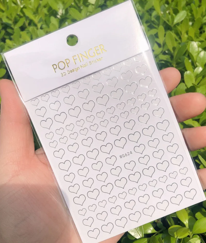 3D наклейки для дизайна ногтей, наклейки, золотыесеребряныерозовые золотые полые сердца, дизайн ногтей, клейкие наклейки, обертывания, украшение для накладных ногтей