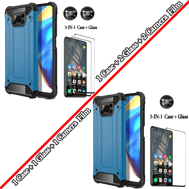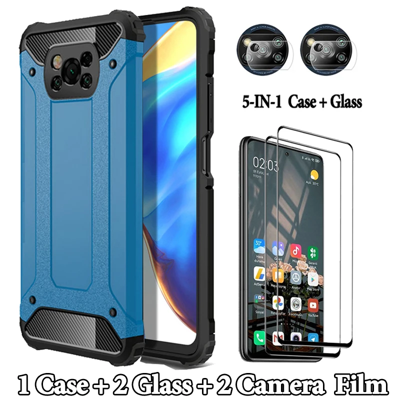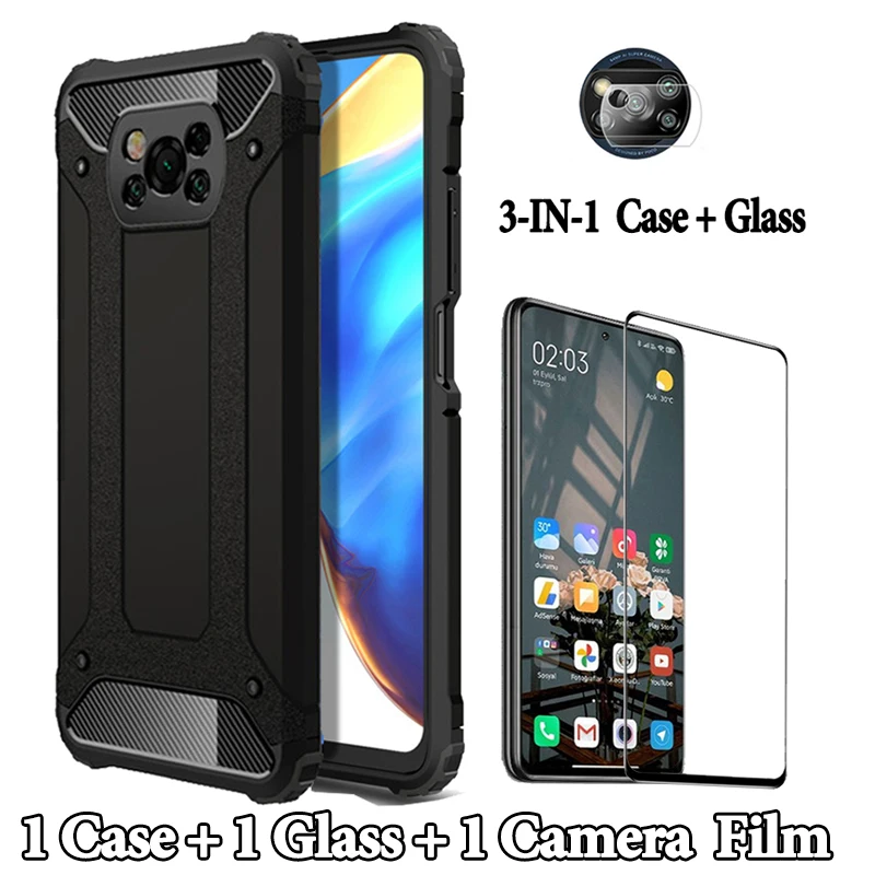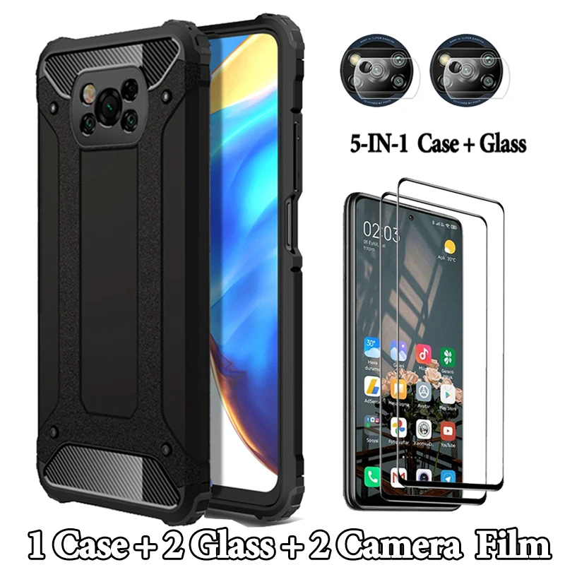 Закаленное стекло + армированный чехол little X3 Pro Pocophone F3 X NFC, силиконовый чехол для Xiaomi 3 Redmi Note10 10S 9S 9T 9C Note 10 Pro, чехол