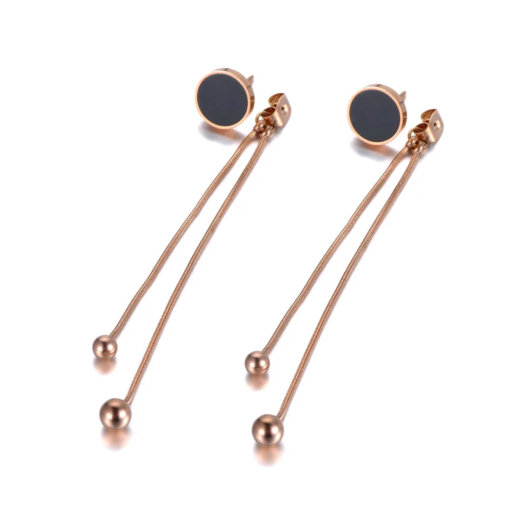 Серьги-кисточки из титановой стали в богемном стиле, ювелирные изделия, розовое золото, черный акрил, летние каникулы, висячие серьги для женщин, E19139