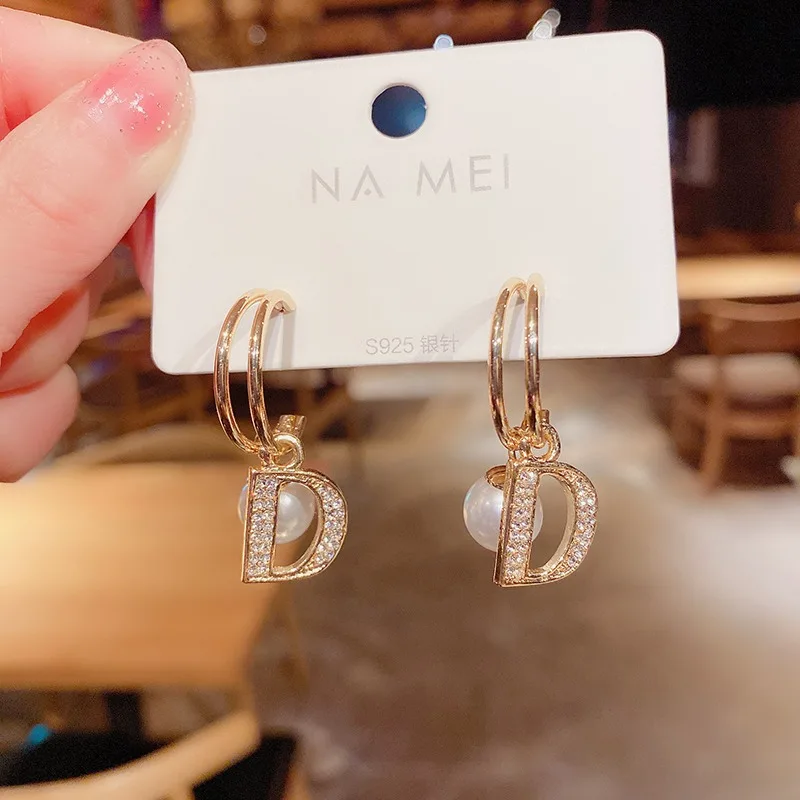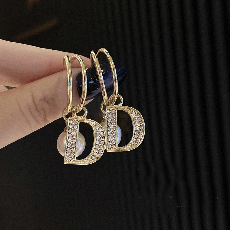 Роскошные брендовые висячие серьги с длинной цепочкой и буквой D для женщин, свадебное ювелирное изделие со стразами, Эффектные серьги