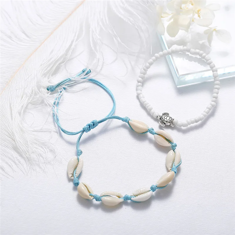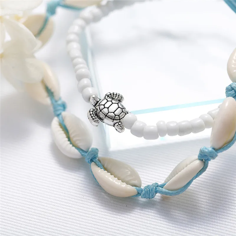 Браслет на ногу женский многослойный, с бусинами, в богемном стиле, 17 км, браслет с черепахами