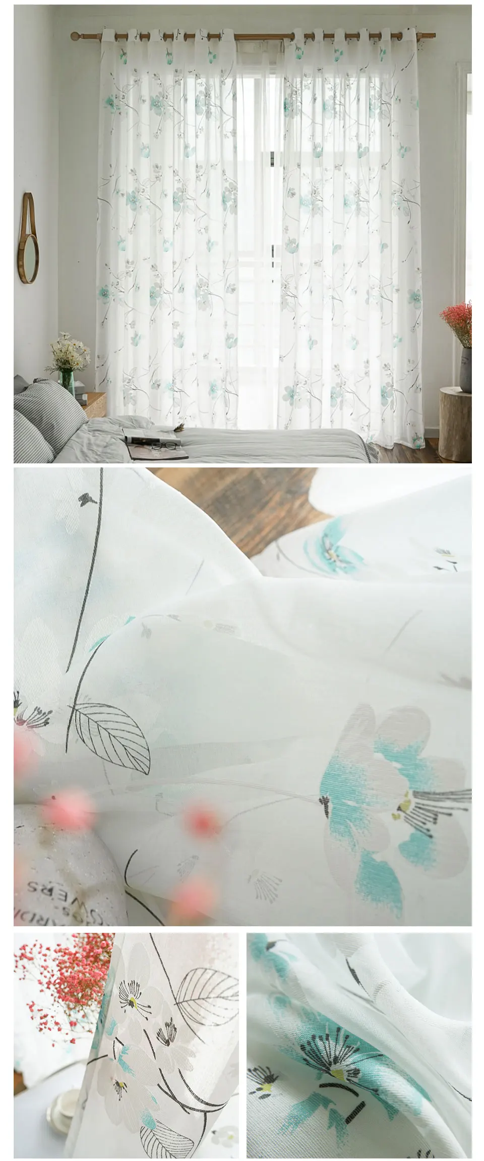 Прозрачная занавеска CDIY Morning Glory, тюль с принтом для гостиной, спальни, украшение для дома, драпировка из вуали с цветочным принтом