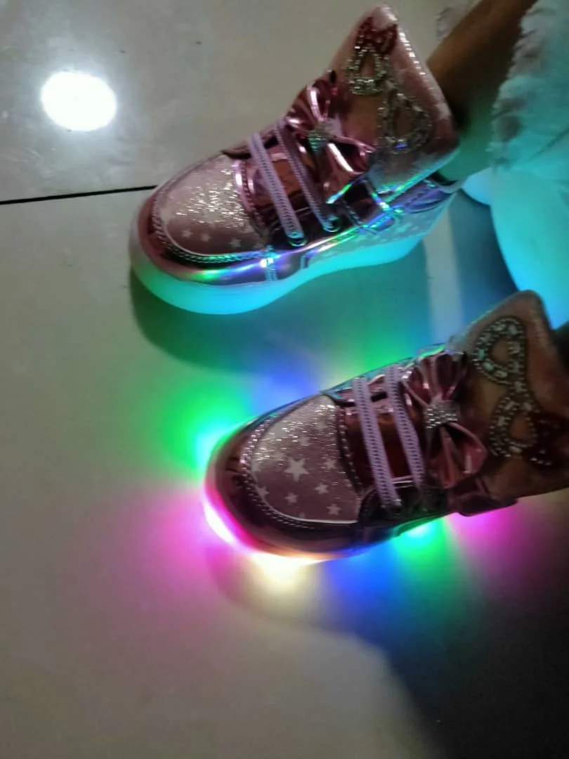Детские светящиеся кроссовки, повседневная спортивная обувь для девочек, размеры 21-30