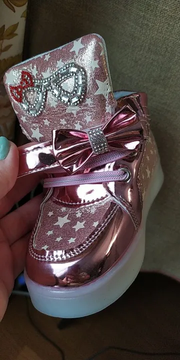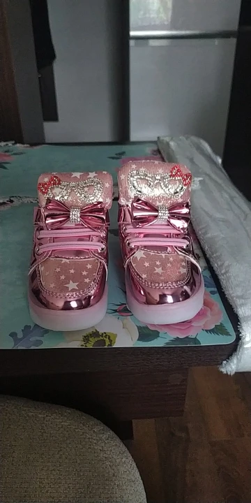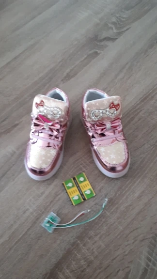 Сами по себе кроссовки неплохие, нежненькие, розовенькие, красиво для девочки. Но, во-первых товар пришёл на 10 дней позже, но это не так страшно. Во-вторых, не успели мы отходить в них и 5 минут, они перестали мигать и больше не работают