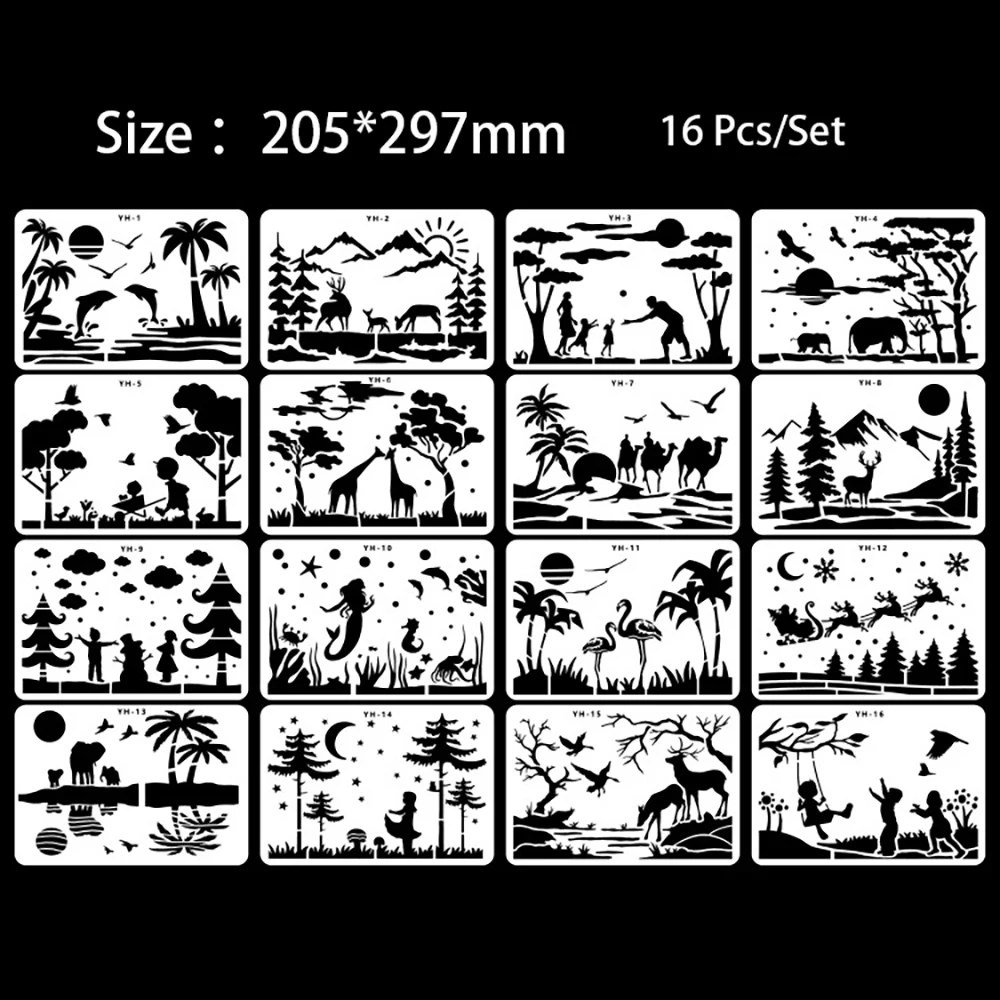 16 листов А4 лес звездное небо полые картины Шаблон Линейка DIY копия трафареты для краски альбом декоративный шаблон