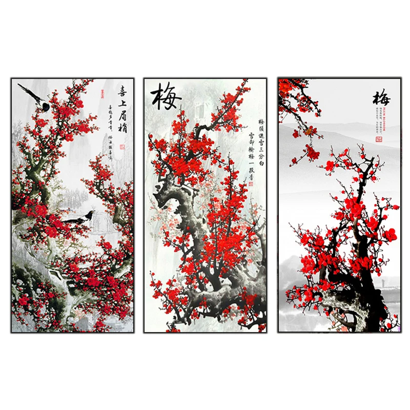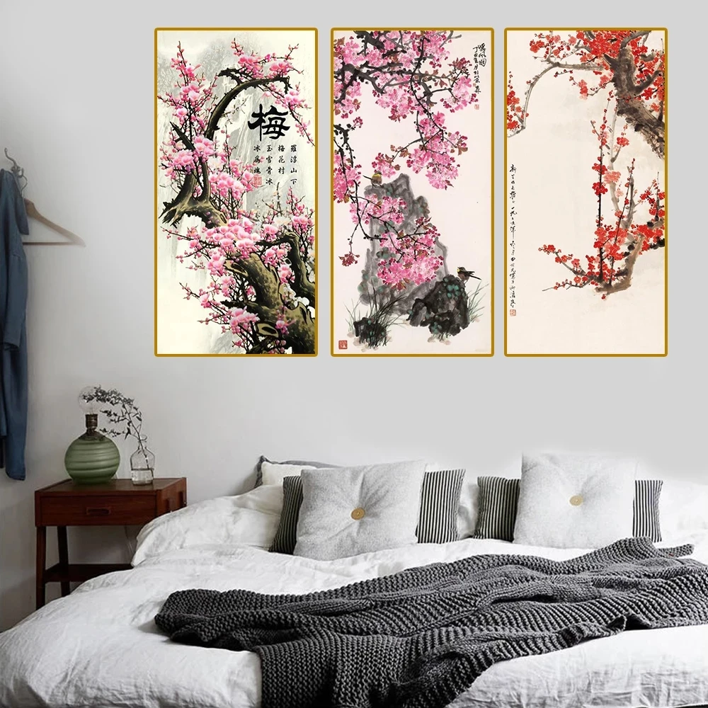 Современный минималистичный плакат в китайском стиле с цветком сливы, настенные художественные картины и плакаты для украшения гостиной, спальни