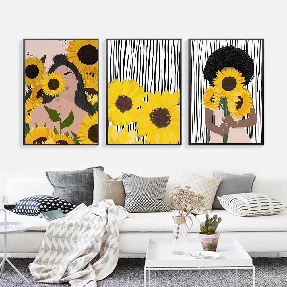Подсолнухи WTQ, черная девушка, женщина, настенное искусство, холст, живопись, плакаты, принты, феминистские фотографии, африканские искусства, украшение для дома