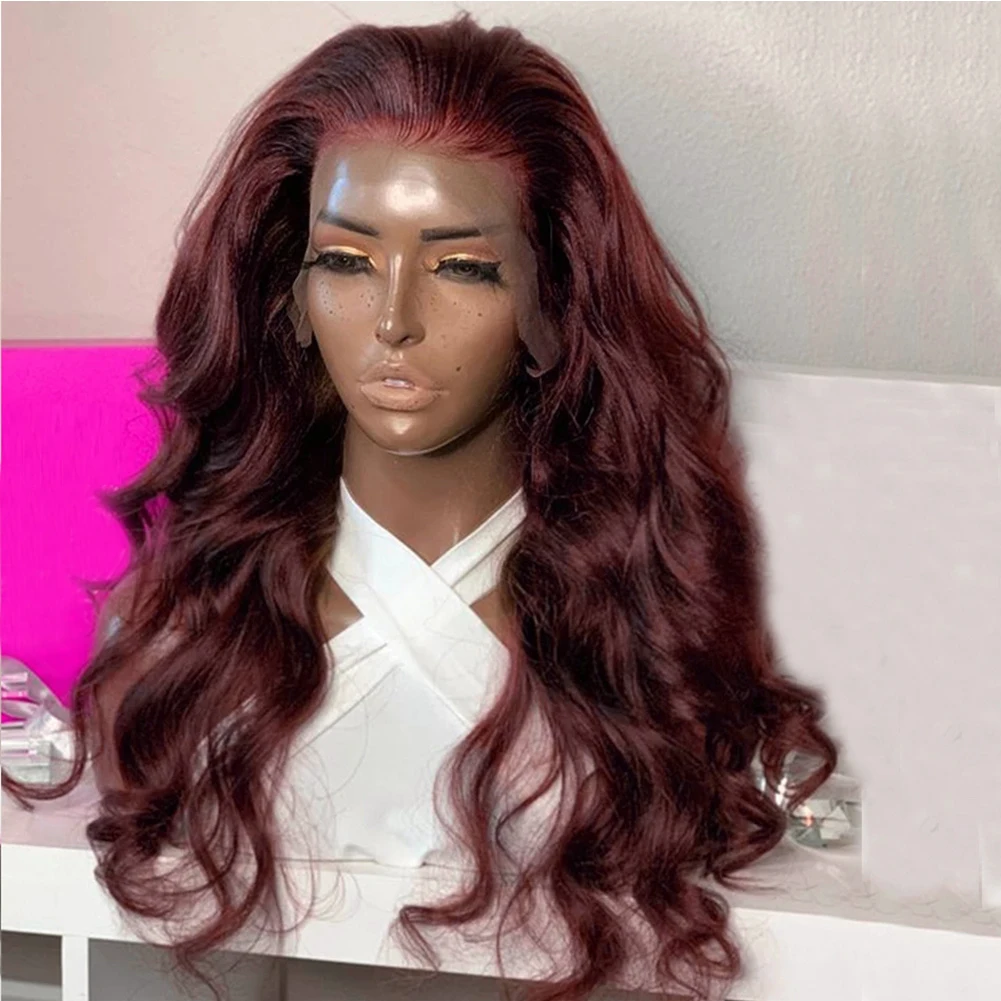 Парик для косплея RONGDUOYI для женщин, бордовые Длинные Синтетические волнистые волосы, из термостойкого волокна