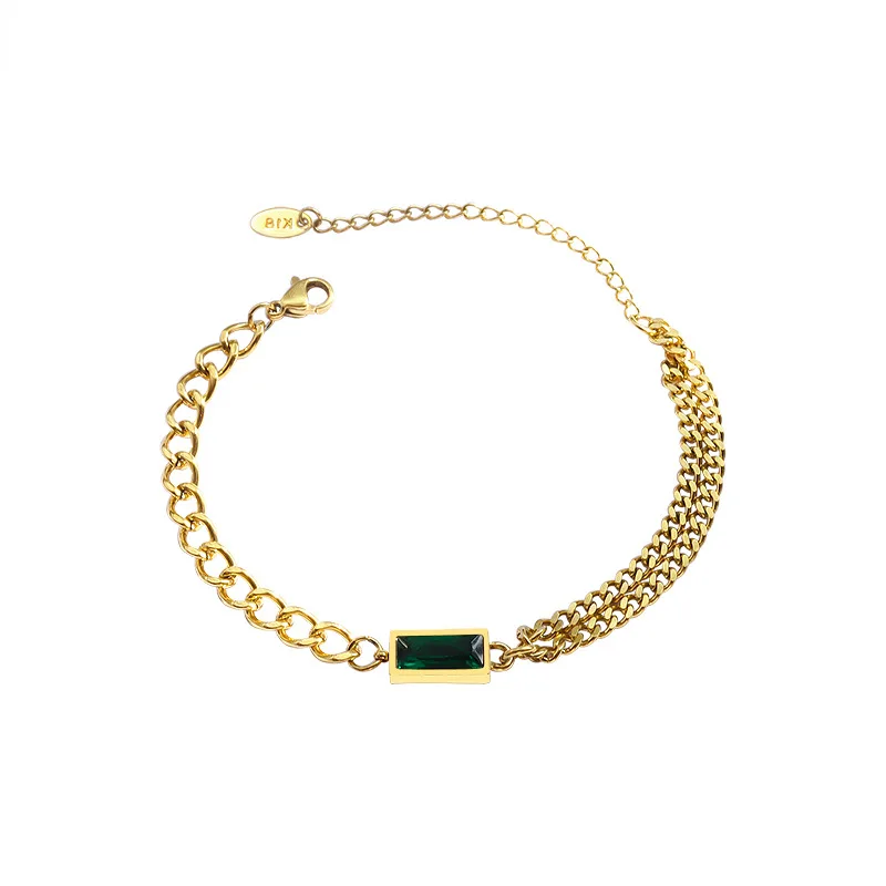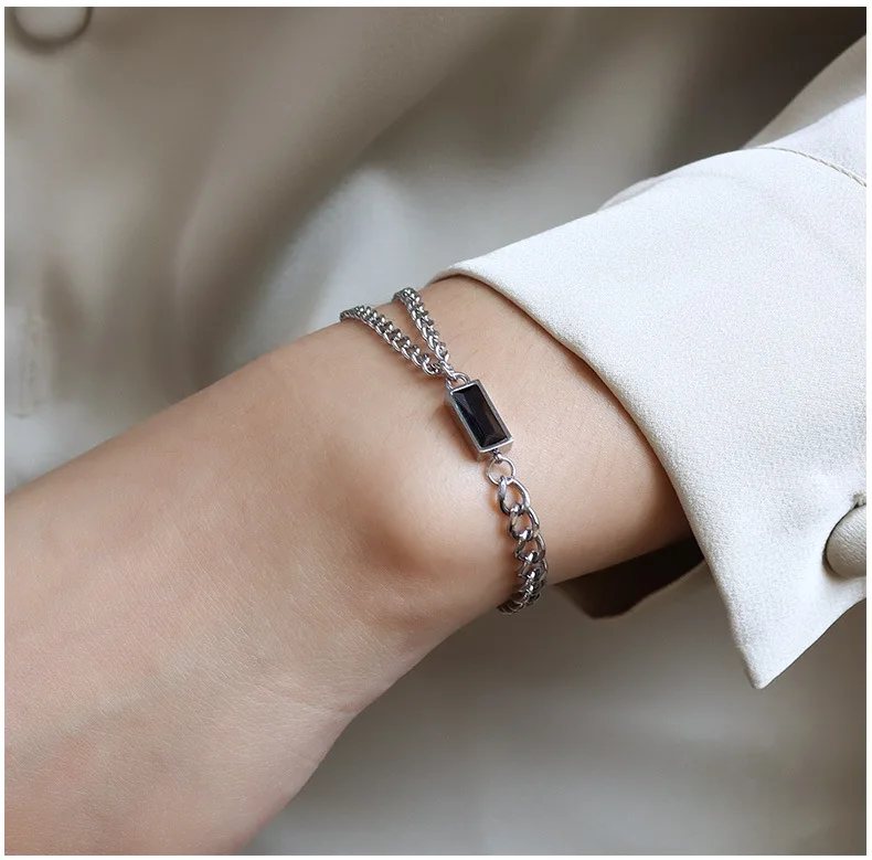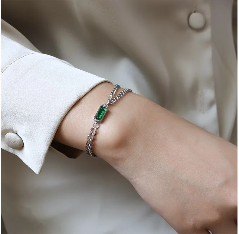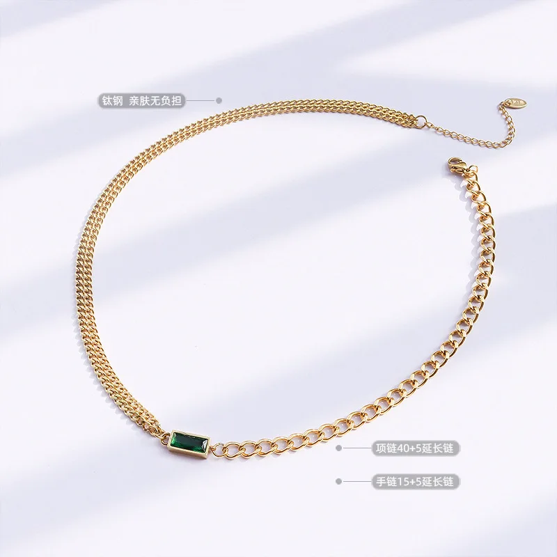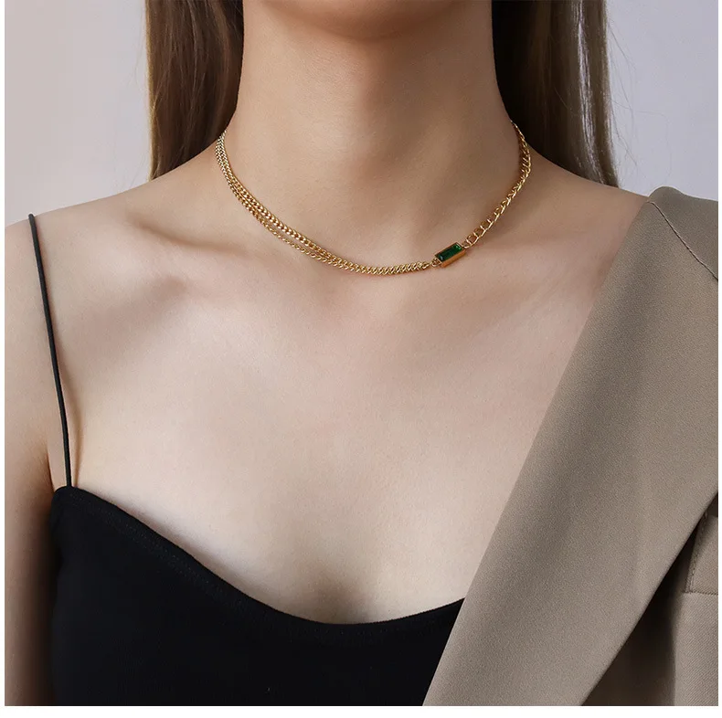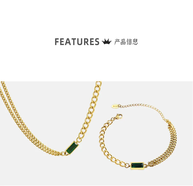 Двойная цепь цвета: черный, зеленый, ожерелье из циркона ожерелье браслет Ювелирные наборы нержавеющая сталь 316 L ювелирные изделия женские цены по прейскуранту завода-изготовителя никогда не выцветает, Лидер продаж