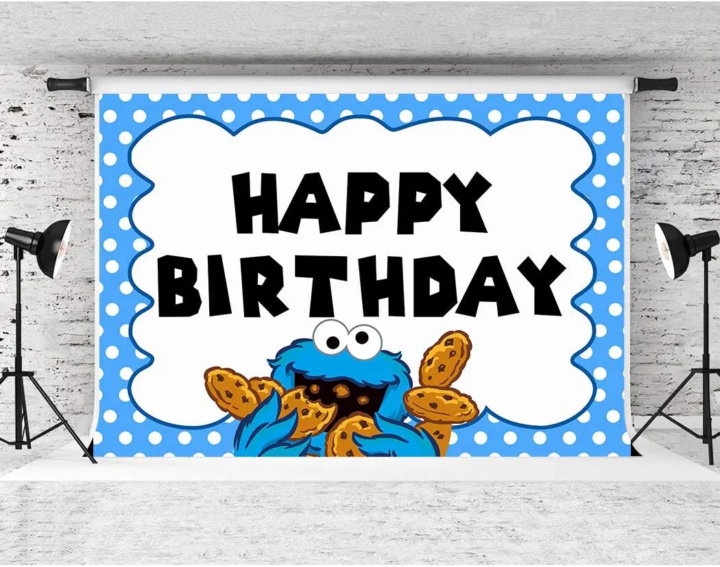 Мультяшный фон с печеньем для вечеринки на день рождения синий фон с изображением монстра для детского дня рождения вечеринки торта баннер на стол