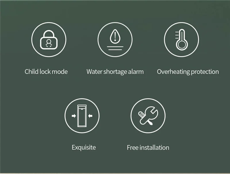 Безопасная и Быстрая система отопления, нагревание быстрее и Равномерная температура. Диспенсер для воды использует двойную технологию нагрева, с уникальным спиральным маршрутом, установленным посередине, чтобы равномерно завершить нагрев. Нагревательный элемент имеет независимую теплоизоляционную панель, которая является безопасной и эффективной.