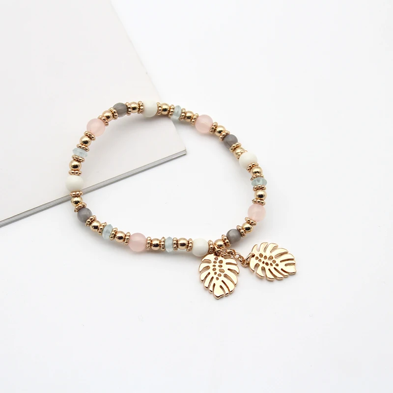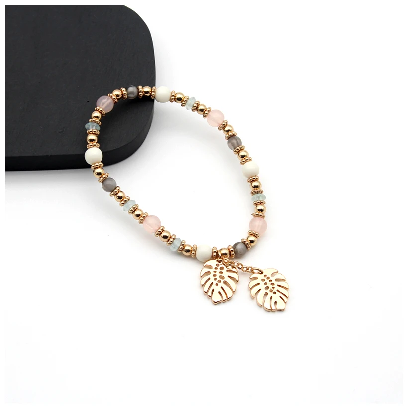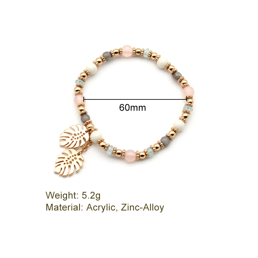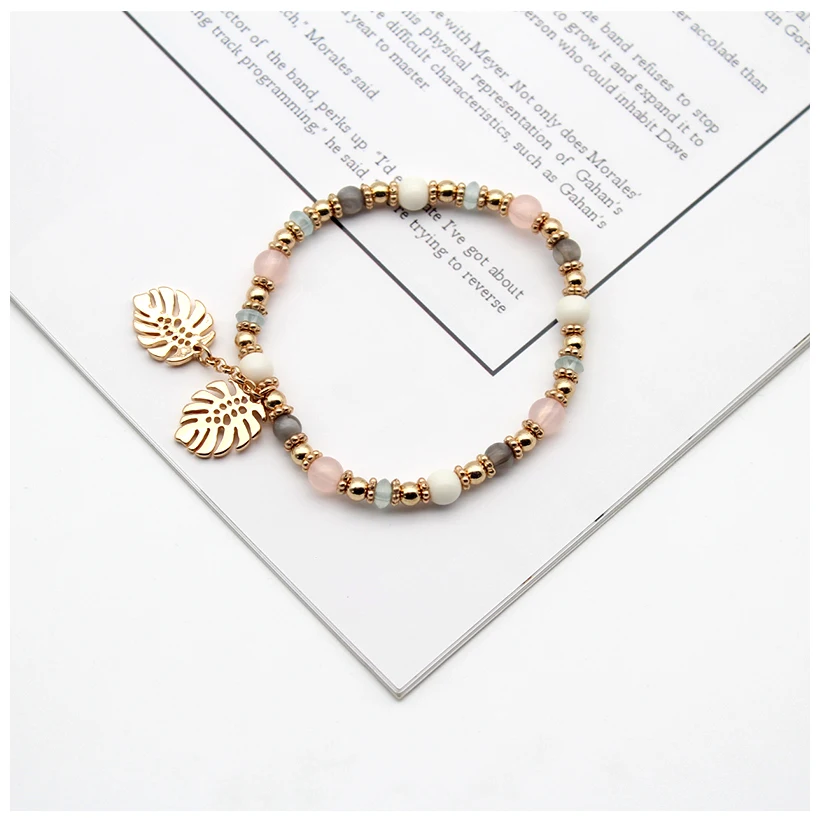 Браслет женский, разноцветный, с листьями из кристаллов, эластичный, 2021, 202157