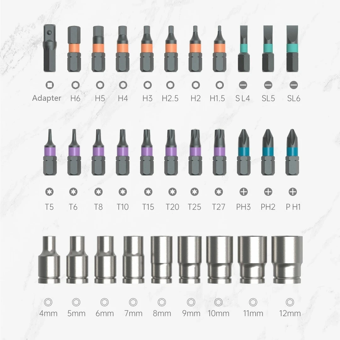 Screwdriver heads quantity31Pcs, 5 category of screwdriver heads