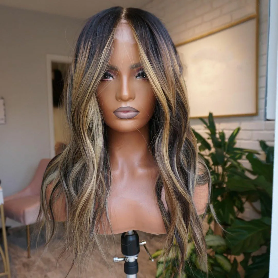 Парик блонд средней длины, парик из синтетических волос с детскими черными волосами для ежедневного использования