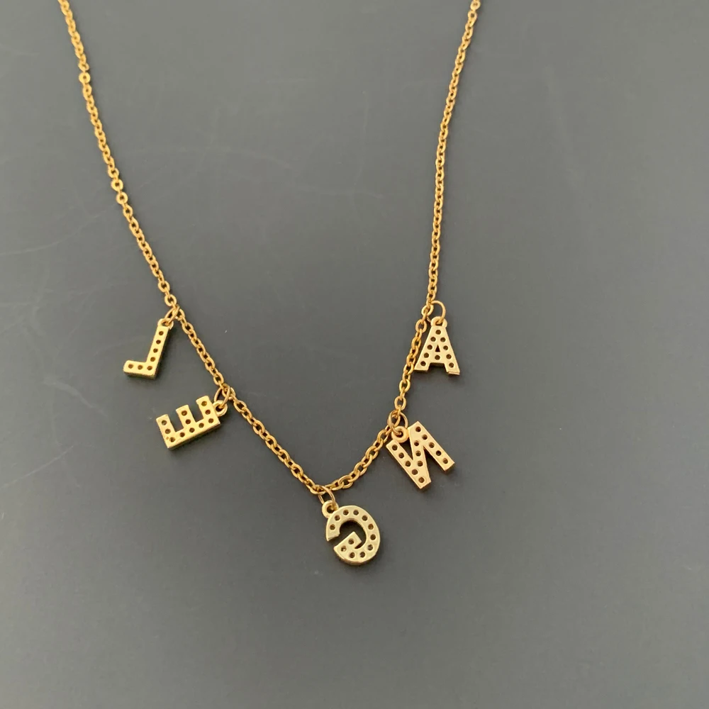 DIY Мини циркониевые буквы с именем на заказ очаровательное Золотое микро-паве CZ Алфавит ABC подвеска чокер ожерелье Женская стальная цепь ошейник