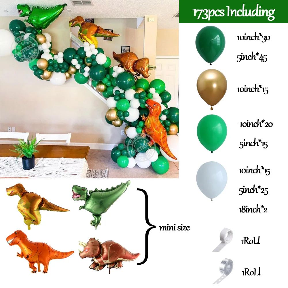 АРКА-динозавр зеленая воздушные шары-гирлянды, 173 шт., для украшения дня рождения ребенка, вечевечерние мальчика