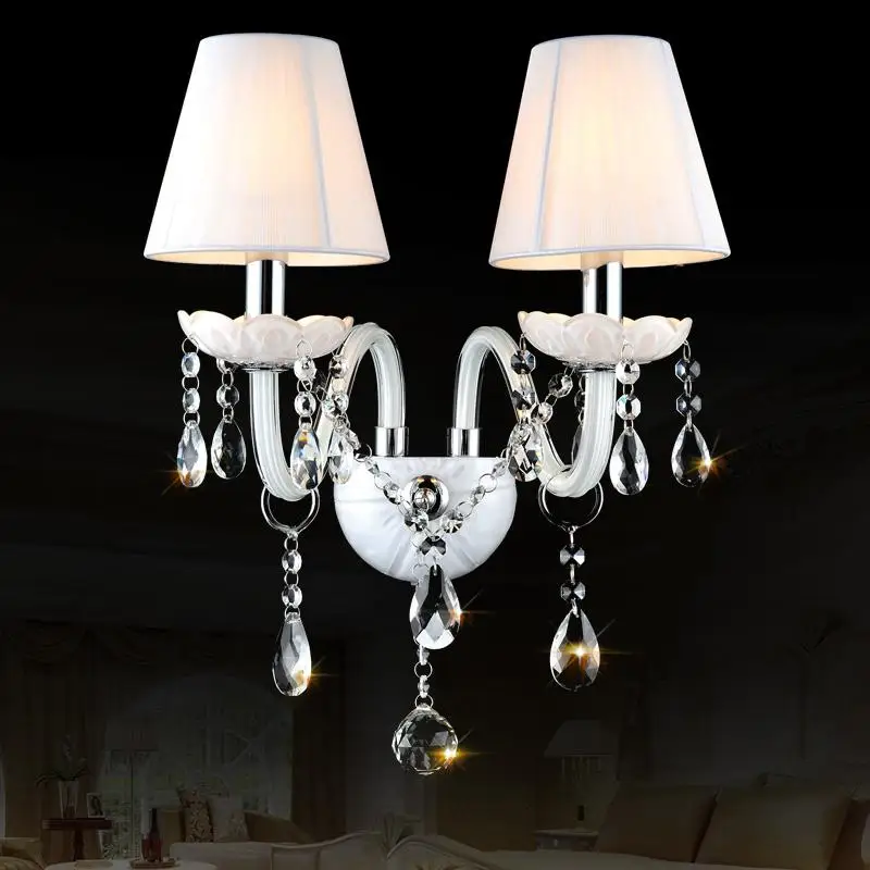 Современный K9 Белый Хрустальный настенный светильник свеча светодиодные лампы E14 двойная головка Светодиодные лампы E14 белый 123 руки сбез абажура из ткани