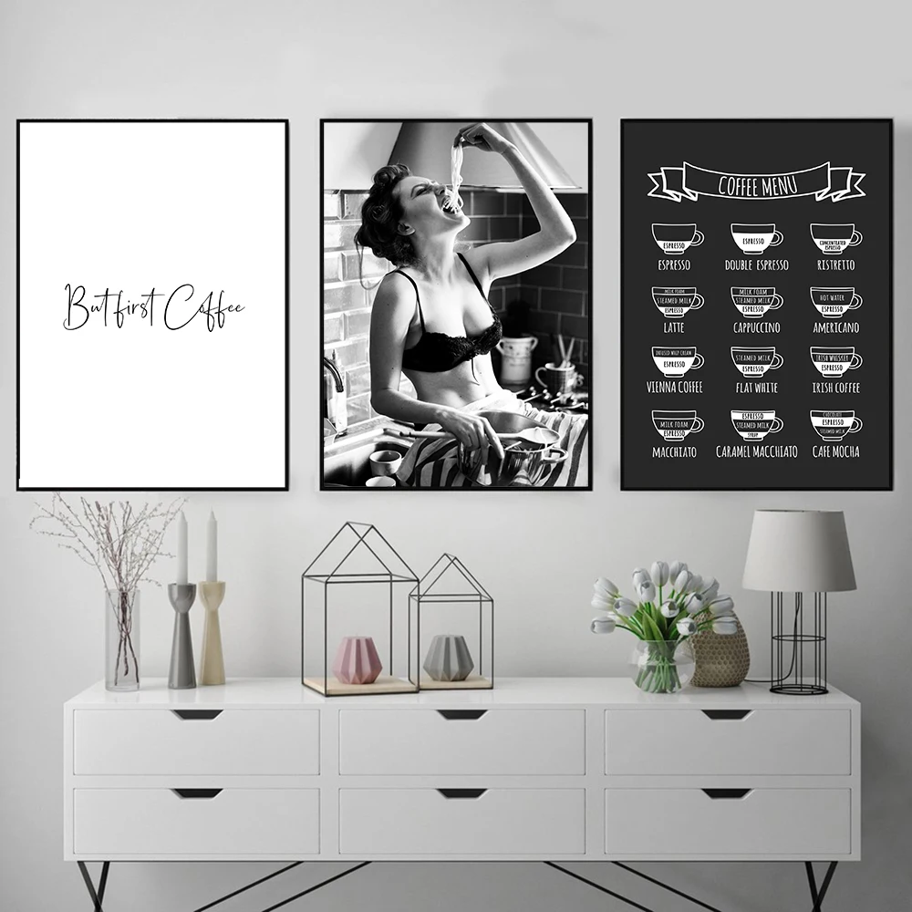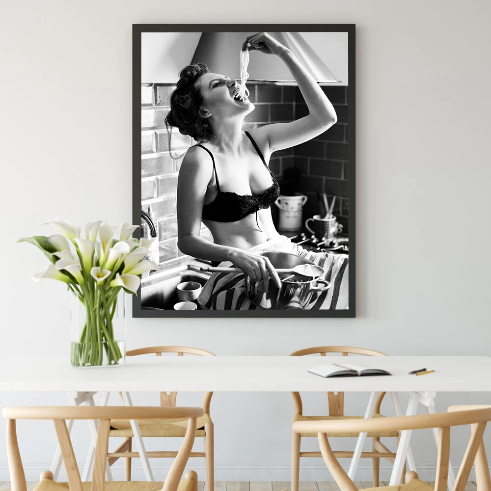 Печать Спагетти женщины паста момент плакат но первый кофе меню настенное Искусство Холст Картина Foodie женщина фотография Кухня Декор