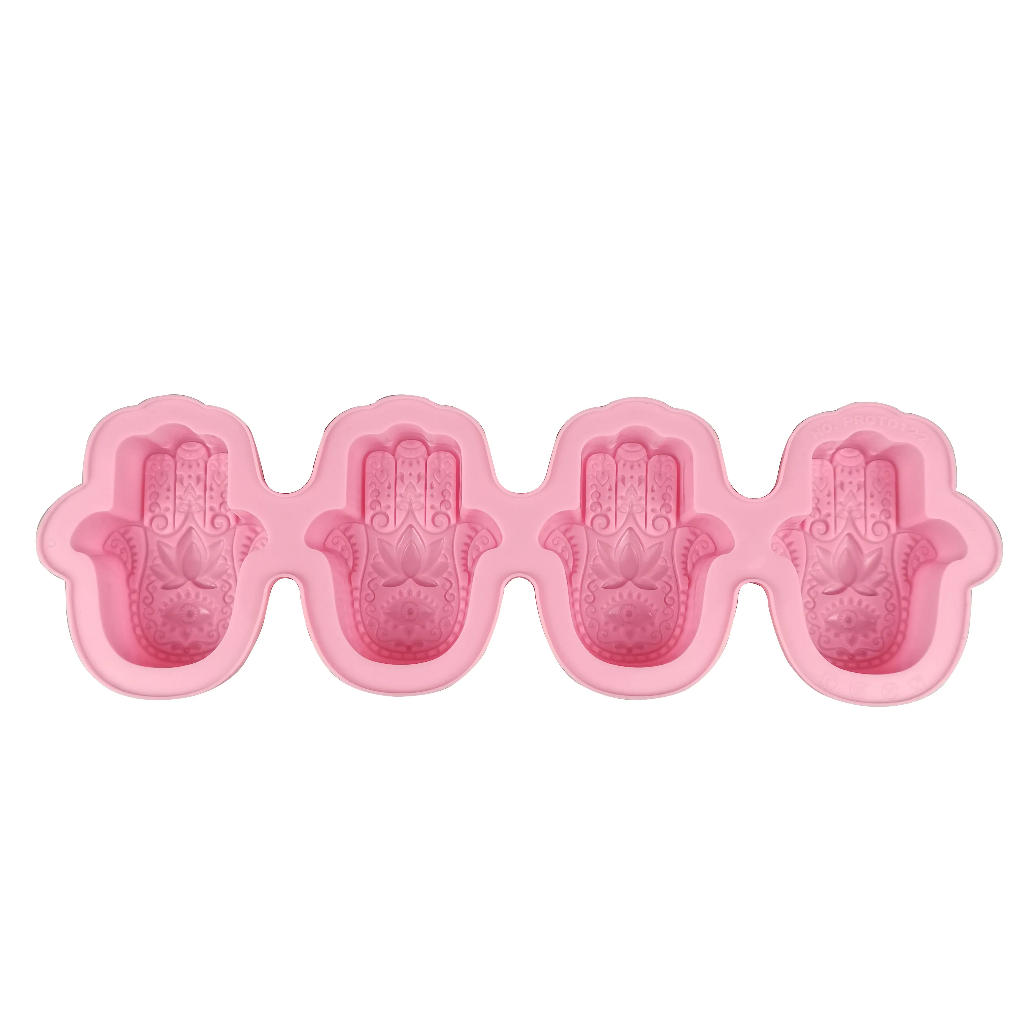 4 полости Лотос Палм-Форма мыло силиконовые формы лакированная рука Фатимы ", пресс-форма для DIY Aromatherarpy для домашнего украшения CraftTools