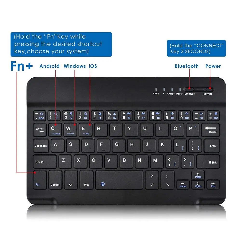 Особенности: изготовлен из качественного материала. Модный дизайн, легко носить и легко выделяться. Идеально подходит к форме. Стабильная и моющаяся. Защищает вас от пыли, царапин и ударов. Защищает ваши ценные инвестиции от любых потерь.Описание Шаг 1: Включите кнопку ВКЛ/ВЫКЛ.Шаг 2: Нажмите кнопку подключения в течение длительного времени, индикатор Bluetooth загорится.Шаг 3: переверните bluetooth-переключатель планшета и найдите устройство bluetooth. Название коробки клавиатуры по умолчанию-bluetooth 3,0.Шаг 4: нажмите на клавиатуру Bluetooth 3,0 на планшете или телефоне, пароль должен быть 4 арабскими цифрами, затем вставьте клавиатуру, например 0807, в планшет. После нажатия на клавиатуру вы можете нажать enter для подключения (цифровая Клавиша клавиатуры и клавиша объединяются в f1. Вам нужно использовать такие клавиши, как F1-F12, вам нужно нажать fn + соответствующую систему для переключения на подсистему машины. При использовании ключа в качестве f1 также используется ключ match. Изменение алфавита с помощью клавиш shift + alt + space.