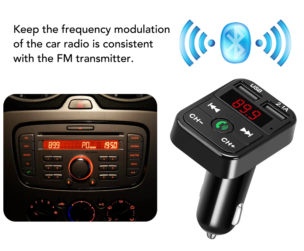 Инструкции по использованию:1. Вставьте устройство в автомобильный прикуриватель, включите автомобиль для включения питания;2. Настройте автомобильное радио и устройство на тот же пустой канал, например, если автомобильное радио 87,5 МГц, устройство должно быть 87,5 МГц, нажмите [CH] для регулировки частоты;3. Включите Bluetooth телефона, найдите "BT-Car" и сопрягите с ним, успешно Соедините, Воспроизводите музыку телефона, звук будет исходить из автомобильного динамикаTF/USB Flash воспроизведение музыки:Если вставить tf-карту или usb-флешку, он автоматически воспроизводит музыку USB;Длительное нажатие кнопки [Ответ] для переключения режима музыки между режимами USB/TF/BluetoothРежим Bluetooth:Короткое нажатие кнопки [Ответить]: ответить/повесить вызов;Длительное нажатие кнопки [Ответ]: Отклонение вызоваДвойное нажатие кнопки [ответ]: Повторный набор последнего номера телефона