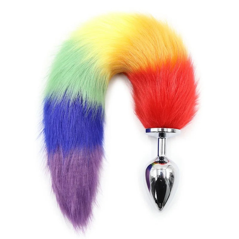 Радужная лисасобачья хвост металлическая пушистая Анальная пробка с...