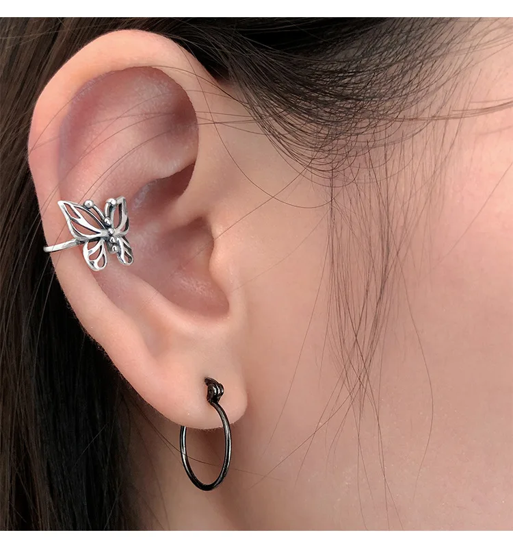 Серьги-клипсы геометрической формы с вырезами в виде бабочки для женщин и девочек, темпераментные серьги-каффы для хрящевой ткани уха, ювелирные изделия, подарки