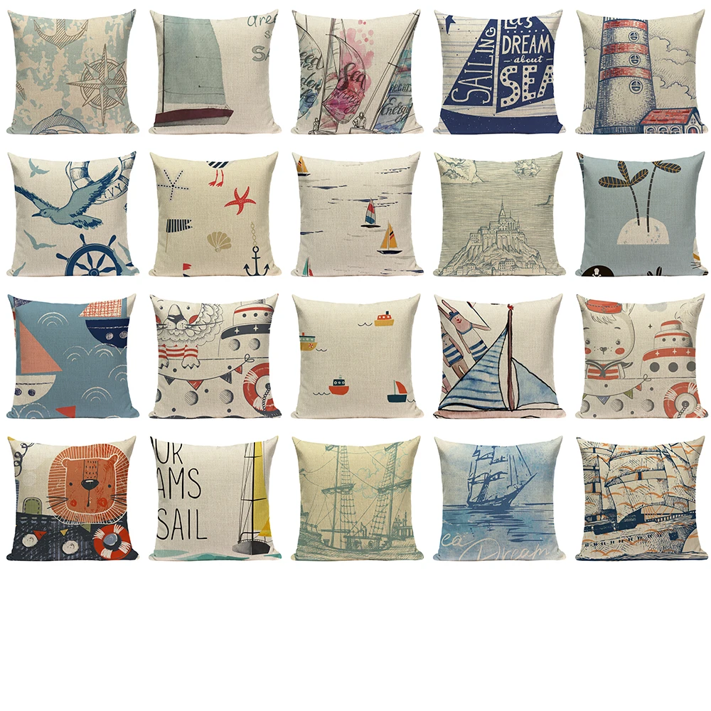 Красочные морские корабль пледы наволочки мультфильм Животные наволочка 45-45 см лодка домашний декор наволочка с изображением автомобиля наволочка Housse Coussin