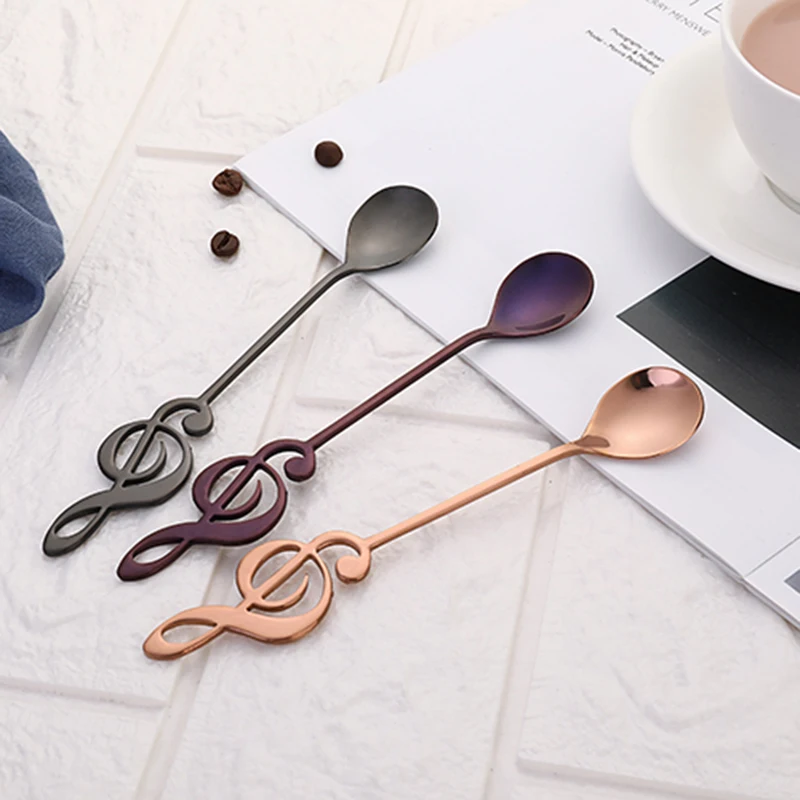 Ложка из нержавеющей стали, кофейная ложка, музыкальный символ, тематическая ложка для смешивания чая, маленькая, для мороженого, десертов, креативные столовые приборы, кофейная посуда