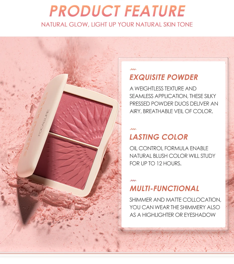 FOCALLURE натуральный минеральный пигмент Румяна Пудра для макияжа лица бронзант, контур персиковый бледно-розовый румяна