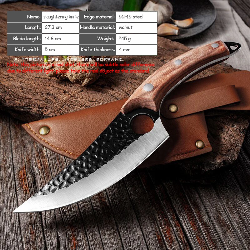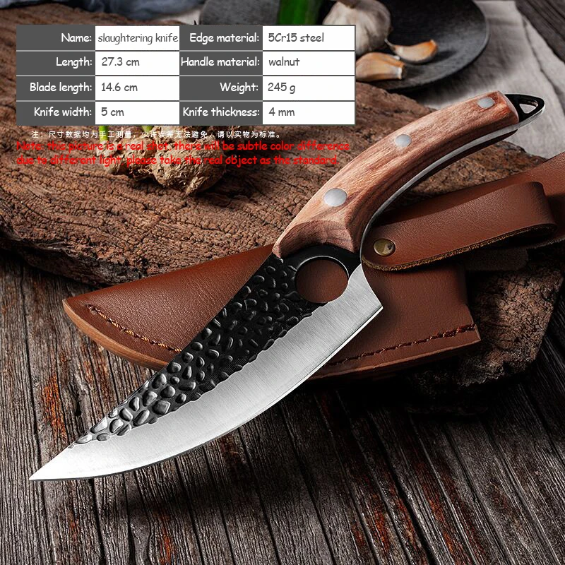 6 "Нож для мясника орехаДлина: 27,3 смДлина лезвия: 14,6 смШирина лезвия: 5 смТолщина лезвия: 4 ммМатериал лезвия: сталь 5Cr15Твердость: 58-60HRC