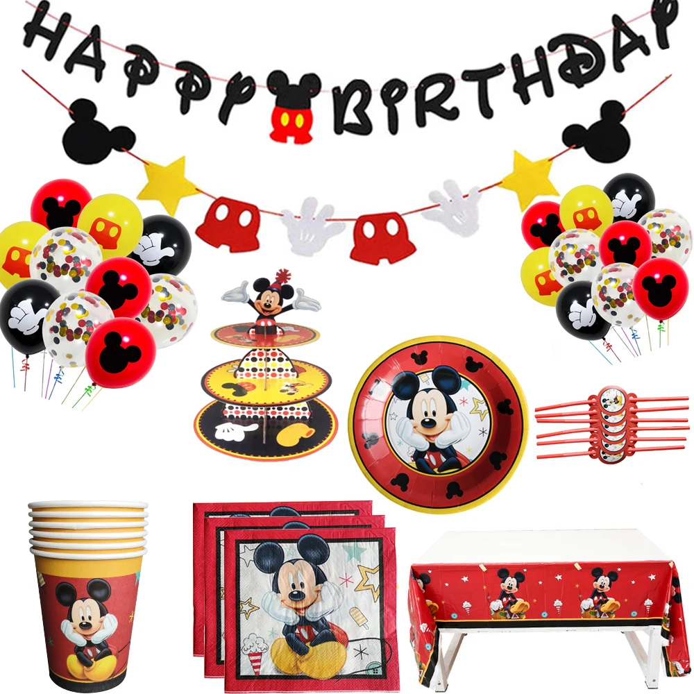 Одноразовая посуда для вечерние рождения с Микки Маусом, празднично...
